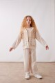 KIZ ÜÇLÜ GÜPÜR DETAYLI KETEN TAKIM